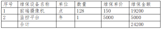 監(jiān)控點(diǎn):乙方所提供的服務(wù)費(fèi)分?jǐn)傊撩恳粋€(gè)攝像監(jiān)控點(diǎn),全年24200元;設(shè)備更換:對(duì)更換超過(guò)100元以上價(jià)值設(shè)備的費(fèi)用,按招標(biāo)合同價(jià)與甲方另行結(jié)算。